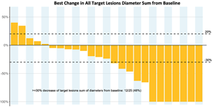 - 48.0% (12/25) all target lesions response (≥ 30% change in target lesion sum of diameters; see below)