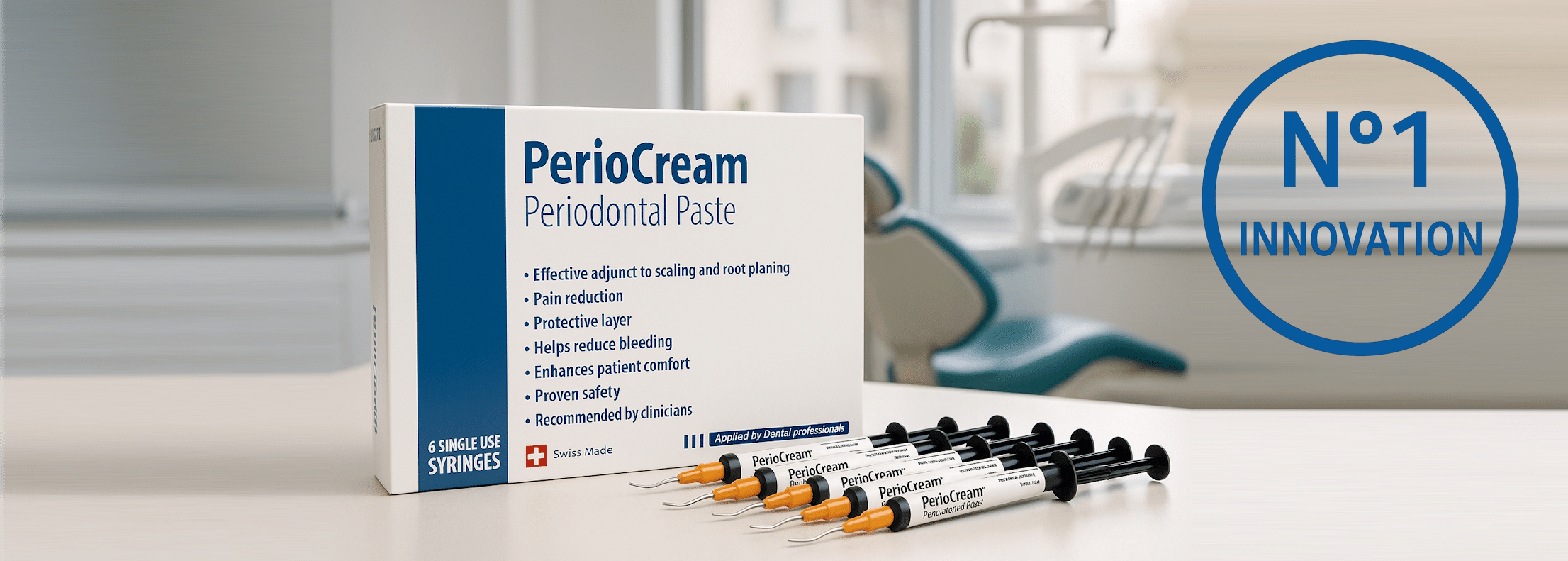 PerioCream is a Periodontal Paste intended as a physical barrier to protect the gumline and provide pain relief after dental procedure such as Scaling and Root Planing (SRP).