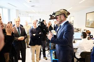 - From left to right: Daniela Horn, Policy Officer for Cross-Sectional Materials at the German Ministry of Defense; Luc Ruyssinck, Program Manager at OCCAR; Christian Hadjiminas, Founder and CEO of THEON; Marion Zekorn, Chief of Division at the German Ministry of Defense; Theo Francken, Belgian Minister of Defense; and Philippe Mennicken, Deputy CEO and Business Development Director at THEON